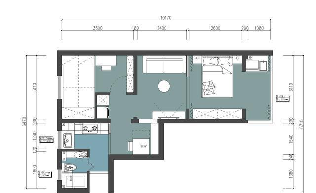 業(yè)主和設(shè)計(jì)師經(jīng)過(guò)幾次修改后最終定出的平面方案,將客廳這邊較大的空間進(jìn)行了隔斷,多出了一間臥室,最終房子是兩室兩廳一廚一衛(wèi)的格局。